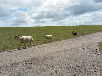 Das zweite Drittel verbrachten wir dann in Ockholm. Von dort starteten wir zu einer Radtour "quer durchs Land". Erst - wieder durch die Schafe - nach Schlüttsiel. Von dort zurück zur Hamburger Hallig und weiter nach Bordelum, um am dortigen Funkmast die Aussicht zu genießen.